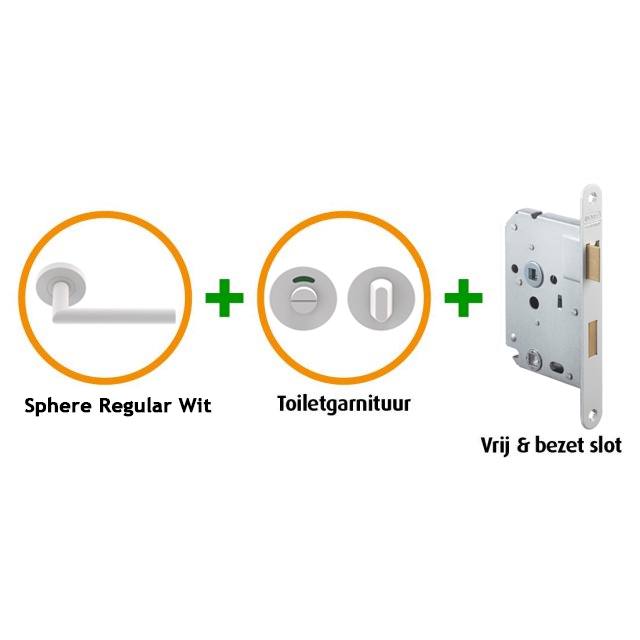 CanDo Binnendeurbeslagpakket Pakket CANHP1110Speciaal ontwikkeld deurbeslag voor CanDo binnendeurenNaast de speciaal ontwikkelde deurbeslag pakketten voor CanDo deuren die een smalslot nodig hebben, bestaan er nu ook pakketten om binnendeuren met een normaal slot te voorzien van mooi deurbeslag.CanDo maakt direct frezingen en boringenCanDo zorgt bij aankoop van dit pakket voor de juiste boringen in de binnendeuren zodat ze kant en klaar zijn om af te hangen. Omdat alle frezingen en boringen al worden gemaakt is het monteren van het deurbeslag een fluitje van een cent.Belangrijke informatieNemef 1200 insteeksloten van dit pakket passen niet op de smalle industriële deurstijlen uit de CanDo Elegant collectie. Industriële deurstijlen zijn slechts 65mm diep waardoor het Nemef 1200 insteekslot met slotkast van 80mm te diep is. Kijk voor deurbeslag pakketten voor industriële deuren naar een CanDo pakket met een smalslot.Deurbeslagpakket CANHP 1109 bestaat uit:+ Nemef 1200 WC-Badkamerslot met witte voorplaat+ Deurkruk Sphere Regular Wit (twee zijden) + Toiletgarnituur Sphere Wit + Geschikt voor stompe en opdekdeuren + Slotgatboring en krukgatfrezing in de nieuwe deur - Pakket CANHP 1110 geschikt voor deuren die géén smalslot nodig hebben Gelijkwaardig pakket met smalslot is CanDo CANHP 307.