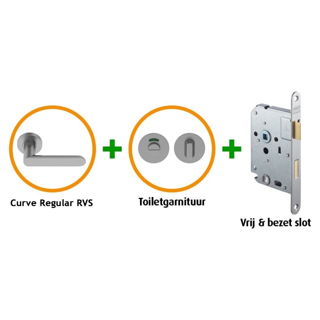 CanDo Binnendeurbeslagpakket Pakket CANHP1112Speciaal ontwikkeld deurbeslag voor CanDo binnendeurenNaast de speciaal ontwikkelde deurbeslag pakketten voor CanDo deuren die een smalslot nodig hebben, bestaan er nu ook pakketten om binnendeuren met een normaal slot te voorzien van mooi deurbeslag.CanDo maakt direct frezingen en boringenCanDo zorgt bij aankoop van dit pakket voor de juiste boringen in de binnendeuren zodat ze kant en klaar zijn om af te hangen. Omdat alle frezingen en boringen al worden gemaakt is het monteren van het deurbeslag een fluitje van een cent.Belangrijke informatieNemef 1200 insteeksloten van dit pakket passen niet op de smalle industriële deurstijlen uit de CanDo Elegant collectie. Industriële deurstijlen zijn slechts 65mm diep waardoor het Nemef 1200 insteekslot met slotkast van 80mm te diep is. Kijk voor deurbeslag pakketten voor industriële deuren naar een CanDo pakket met een smalslot.Deurbeslagpakket CANHP 1112 bestaat uit:+ Nemef 1200 WC-Badkamerslot met RVS voorplaat+ Deurkruk Curve Regular RVS (twee zijden) + Toiletgarnituur Curve RVS + Geschikt voor stompe en opdekdeuren + Slotgatboring en krukgatfrezing in de nieuwe deur - Pakket CANHP 1112 geschikt voor deuren die géén smalslot nodig hebben Gelijkwaardig pakket met smalslot is CanDo CANHP 302.