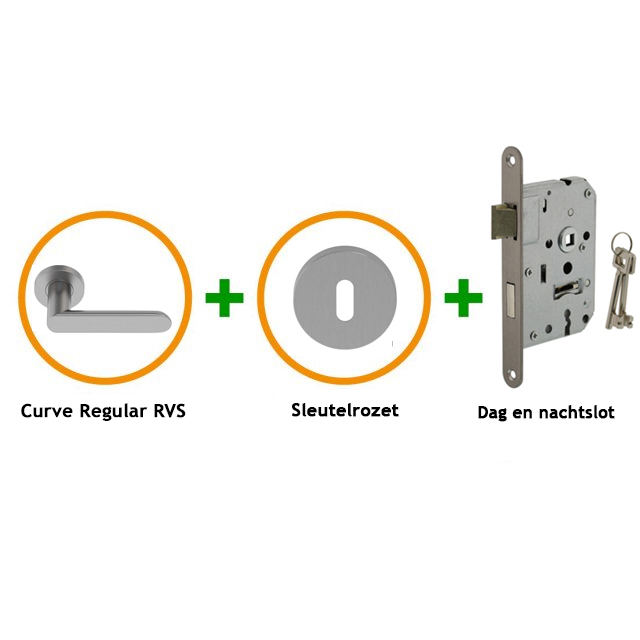 CanDo Binnendeurbeslagpakket Pakket CANHP1212Speciaal ontwikkeld deurbeslag voor CanDo binnendeurenNaast de speciaal ontwikkelde deurbeslag pakketten voor CanDo deuren die een smalslot nodig hebben, bestaan er nu ook pakketten om binnendeuren met een normaal slot te voorzien van mooi deurbeslag.CanDo maakt direct frezingen en boringenCanDo zorgt bij aankoop van dit pakket voor de juiste boringen in de binnendeuren zodat ze kant en klaar zijn om af te hangen. Omdat alle frezingen en boringen al worden gemaakt is het monteren van het deurbeslag een fluitje van een cent.Belangrijke informatieNemef 1200 insteeksloten van dit pakket passen niet op de smalle industriële deurstijlen uit de CanDo Elegant collectie. Industriële deurstijlen zijn slechts 65mm diep waardoor het Nemef 1200 insteekslot met slotkast van 80mm te diep is. Kijk voor deurbeslag pakketten voor industriële deuren naar een CanDo pakket met een smalslot.Deurbeslagpakket CANHP 1212 bestaat uit:+ Nemef 1200 Dag en nachtslot met RVS voorplaat+ Deurkruk Curve RVS (twee zijden) + Sleutelrozet Curve RVS + Geschikt voor stompe en opdekdeuren + Slotgatboring en krukgatfrezing in de nieuwe deur - Pakket CANHP 1212 geschikt voor deuren die géén smalslot nodig hebben Gelijkwaardig pakket met smalslot is CanDo CANHP 202.