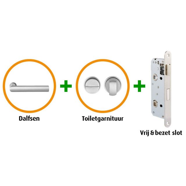 CanDo Industrial Pakket CANHP304Speciaal ontwikkeld deurbeslag.CanDo biedt unieke hang- en sluitwerk pakketten in combinatie met de CanDo Industrial collectie. Omdat dit deurbeslag het enige passende deurbeslag is voor de CanDo Industrial deuren, kies je altijd een CanDo Industrial deur in combinatie met een industrial hang- en sluitwerkpakket. Hierdoor weet je zeker dat het past en kan CanDo een perfecte aansluiting garanderen tussen deur en hang- en sluitwerkpakket.Cando frezingen en boringenCanDo freest bij aankoop van dit pakket machinaal de juiste boringen in de industriële binnendeur waardoor dit speciale deurbeslagpakket snel en eenvoudig te monteren is op de smalle deurstijlen. Een voorbeeld van boringen zijn een slotgat t.b.v een insteekslot, een krukgat voor de deurklink en gaten in de opdekrand van een opdekdeur voor de paumelle scharnieren.BelangrijkStandaard wordt de industriële CanDo binnendeur geleverd zonder slotgatboring en andere frezingen. Industriële deuren in combinatie geleverd met een pakket waarbij een slotgat of andere bewerkingen aan de deur worden gemaakt, kunnen niet geruild, geannuleerd of retour gebracht worden.Standaard insteeksloten en deurkrukken passen niet op de smalle industriële deurstijlen. De deurstijlen zijn slechts 65 mm breed waardoor het insteekslot slechts 50 mm diep kan zijn. De ruimte die overblijft op de smalle deurstijl is te smal voor een deurkruk met rozet of langschild om de deur goed te laten kunnen sluiten. CanDo hang- en sluitwerkpakket CANHP304 bestaat uit:+ CanDo Castricum RVS deurkrukset met minirozet (twee zijden)+ RVS wc- badkamersluiting met minirozet (compleet) + Smal wc- badkamerslot met RVS voorplaat + Geschikt voor stompe en opdekdeuren + Geschikt voor alle CanDo Industrial binnendeuren + Inclusief slotgatfrezing, krukgatboring en boring voor wc-sluiting in bijbehorende industriële deur Totaalprijs inclusief 21% BTW € 216,80 Plaats in winkelmand