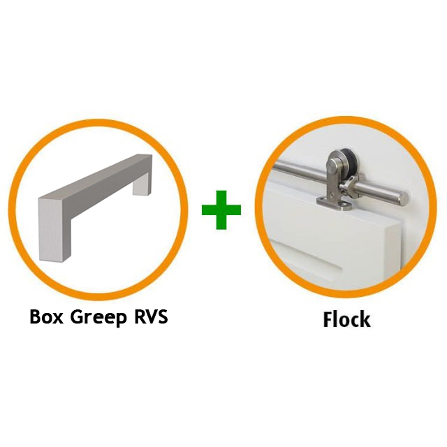 CanDo Industrial Pakket CANHP622Speciaal ontwikkeld deurbeslag.CanDo biedt unieke hang- en sluitwerk pakketten in combinatie met de CanDo Industrial collectie. Omdat dit deurbeslag het enige passende deurbeslag is voor de CanDo Industrial deuren, kies je altijd een CanDo Industrial deur in combinatie met een industrial hang- en sluitwerkpakket. Hierdoor weet je zeker dat het past en kan CanDo een perfecte aansluiting garanderen tussen deur en hang- en sluitwerkpakket.Cando frezingen en boringenCanDo freest bij aankoop van dit pakket machinaal de juiste boringen in de industriële binnendeur waardoor dit speciale deurbeslagpakket snel en eenvoudig te monteren is op de smalle deurstijlen. Een voorbeeld van boringen zijn een slotgat t.b.v een insteekslot, een krukgat voor de deurklink en gaten in de opdekrand van een opdekdeur voor de paumelle scharnieren.BelangrijkStandaard wordt de industriële CanDo binnendeur geleverd zonder slotgatboring en andere frezingen. Industriële deuren in combinatie geleverd met een pakket waarbij een slotgat of andere bewerkingen aan de deur worden gemaakt, kunnen niet geruild, geannuleerd of retour gebracht worden.Standaard insteeksloten en deurkrukken passen niet op de smalle industriële deurstijlen. De deurstijlen zijn slechts 65 mm breed waardoor het insteekslot slechts 50 mm diep kan zijn. De ruimte die overblijft op de smalle deurstijl is te smal voor een deurkruk met rozet of langschild om de deur goed te laten kunnen sluiten. CanDo hang- en sluitwerkpakket CANHP622 bestaat uit:+ CanDo Box RVS deurgreep (twee zijden)+ CanDo Flock schuifdeursysteem van 200cm + Alleen geschikt voor wandmontage + Combineer met stompe CanDo Industrial binnendeuren + Inclusief frezing voor geleider onder in de deur en frezingen voor deurkommen in bijbehorende industriële deur Strak schuifdeursysteem van CanDoCanDo Flock is een modern schuifdeursysteem met RVS finish. Het systeem bestaat uit een ronde buis, twee hangrollen en toebehoren. Met een maximaal belastbaar gewicht van 80 kg is het geschikt voor vele deuren.Voor een dubbele deurensituatie is een speciaal koppelstuk beschikbaar waarmee je twee sets aan elkaar kunt bevestigen. Wil jij een extra koppelstuk, neem dan contact op met de klantenservice. Totaalprijs inclusief 21% BTW € 444,55 Plaats in winkelmand