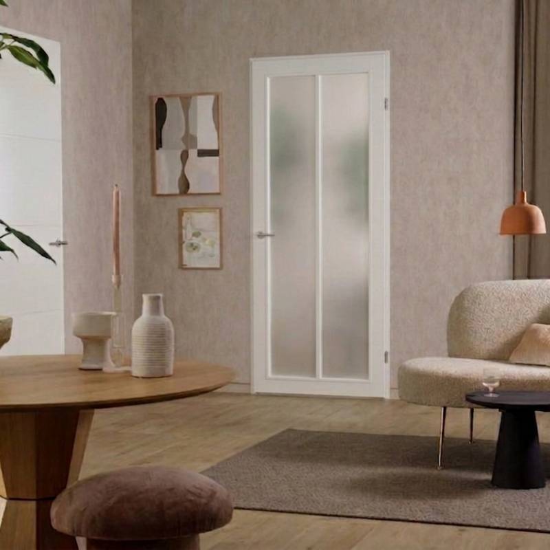 Het schuifdeursysteem kan op en in de wand gemonteerd worden en zijn zeer geschikt voor kleine ruimtes. Het schuifdeursysteem heeft een softstop systeem. De deur wordt direct voorzien van een gleuf aan de onderzijde van de deur voor de vloergeleider en het slotgat kan dichtgemaakt worden met een slotgatstopper. (apart bijbestellen). Een afwerkkoof en schuifdeurkommen zijn los leverbaar en als aanvulling te bestellen.